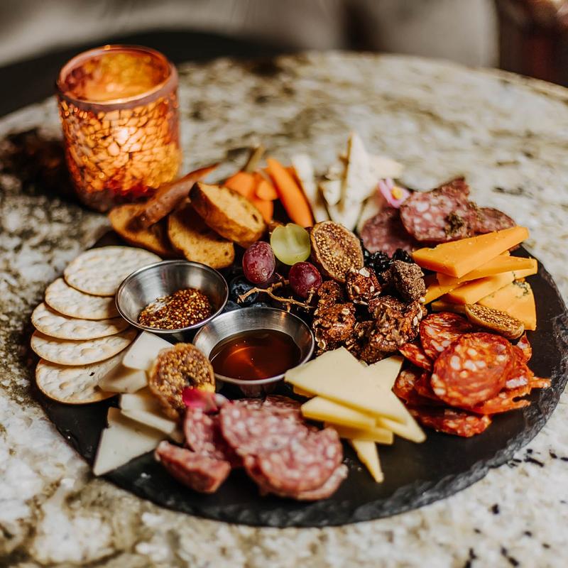 House-made cheddar biscuits, brie, prosciutto, brulee'd fruit, hot honey, sage.